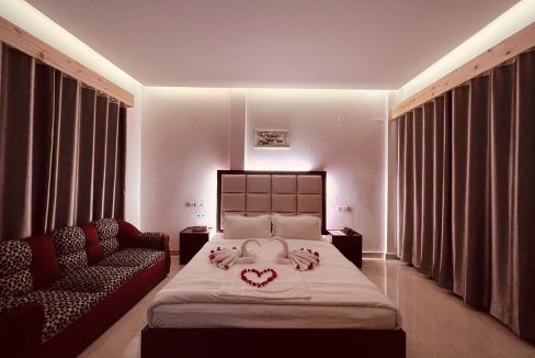 Welcome to our Deluxe Room, where luxury meets comfort in a perfect blend. As you step into this spacious haven, you’ll be greeted by